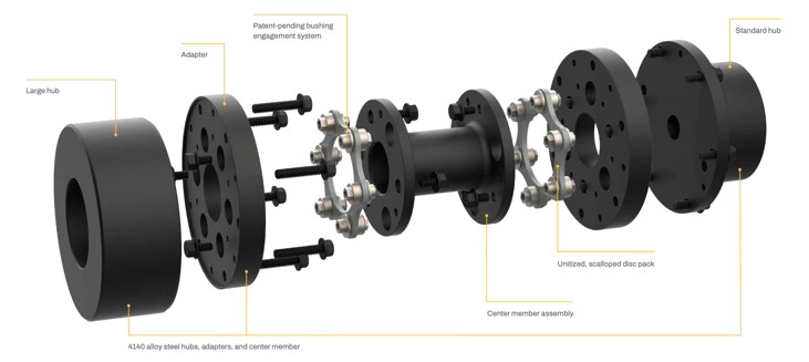 - การสับเปลี่ยนชุดประกอบชิ้นส่วนกลาง (Center Member Assembly) แบบ “ใส่แทนได้ทันที” (Drop-in) ที่สามารถใช้แทน Thomas Disc Coupling ได้ช่วยให้เปลี่ยนทดแทนได้ง่ายในงานที่มีอยู่เดิม โดย ไม่จำเป็นต้องดัดแปลงหรือขยับ อุปกรณ์ที่เชื่อมต่ออยู่